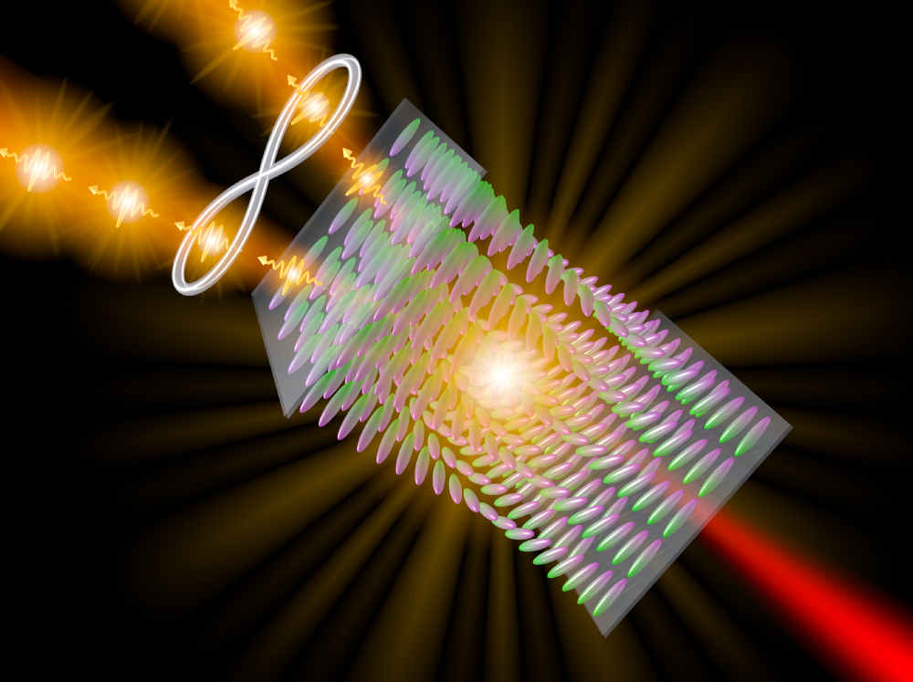 Liquid-crystal droplets have been used for the first time as optical cavities and lasers. We have demonstrated tunability of the laser output by electric field and temperature, which is much higher than demonstrated till now in solid state devices. The results have been published in Nature Photonics and highlighted on the journal cover page. We have also demonstrated optical readout from chemical sensors in liquid-crystal droplets. From cholesteric liquid crystals we have for the first time made a laser which is emitting light in all directions. So called 3D laser acts as a coherent point source of light. This result received huge media interest and reached at least 40 million of readers. We have patented the 3D laser in European Union, USA, Japan, China, Russia, India and South Korea. We are continuing the research on novel liquid-crystal-based lasers, which do not only have tunable wavelength, but the beam shape can be tuned almost arbitrarily. The laser beam also carries topological charge, which is coupled to the topology of the liquid crystal structures in the laser cavity.